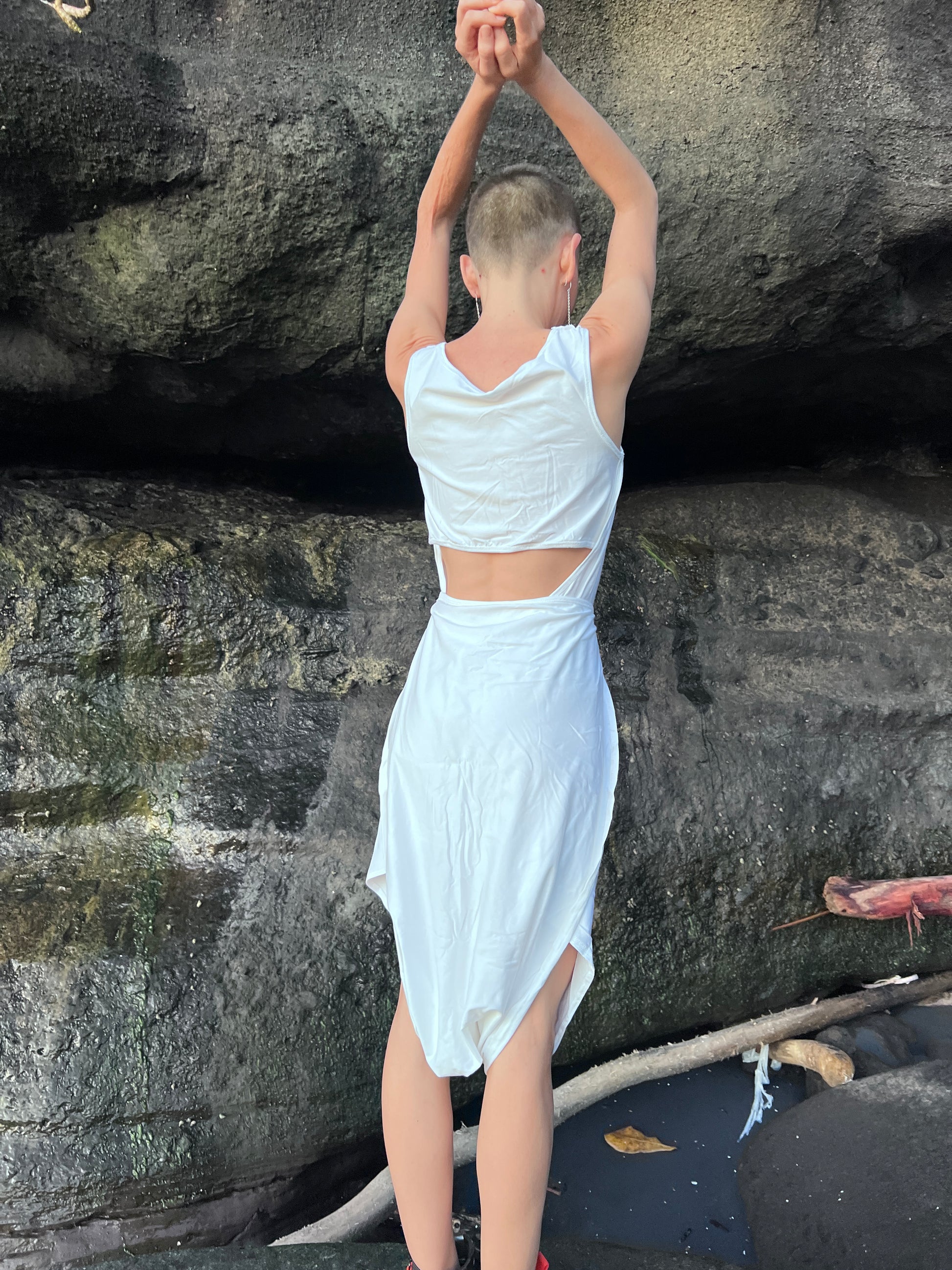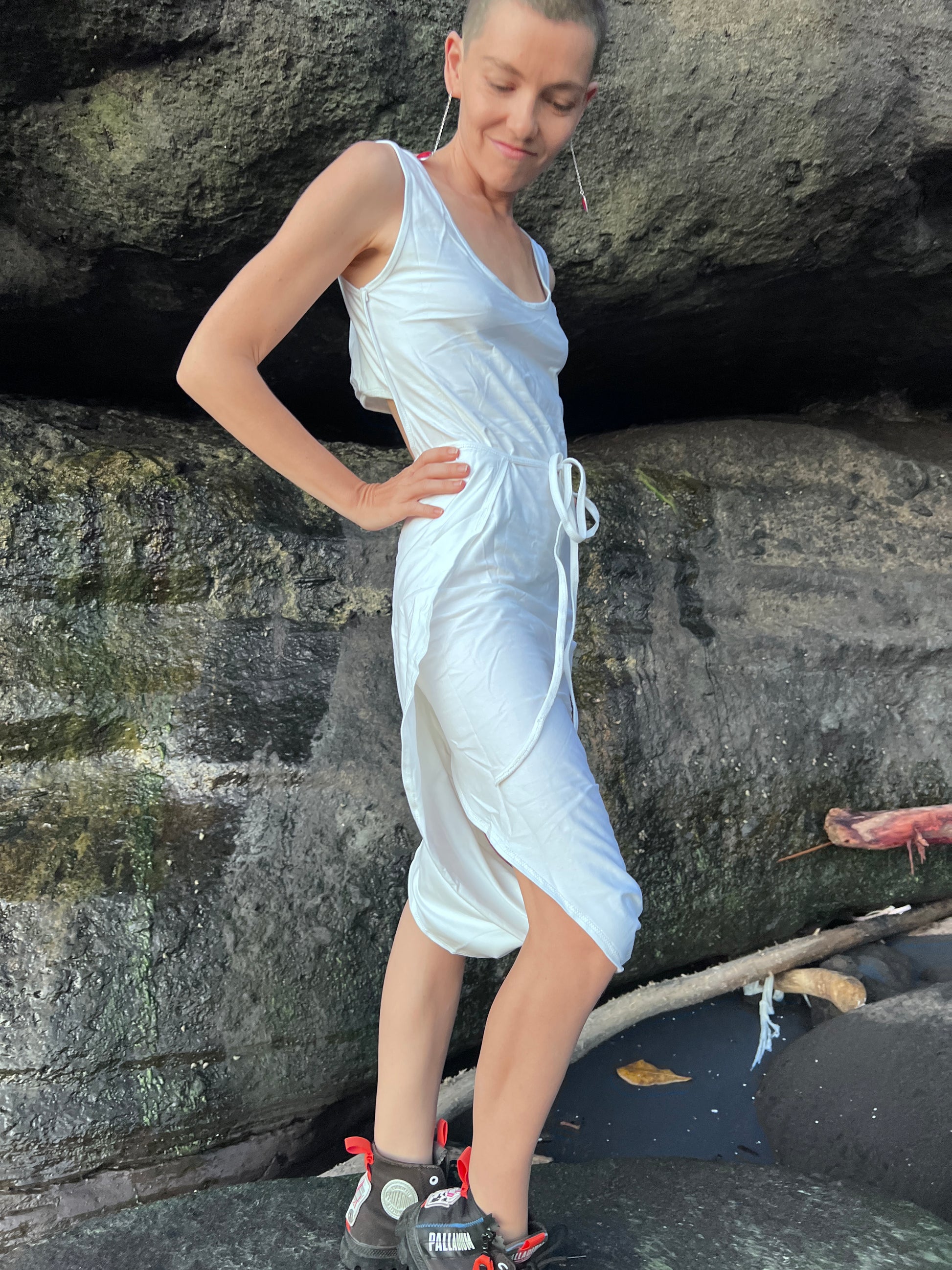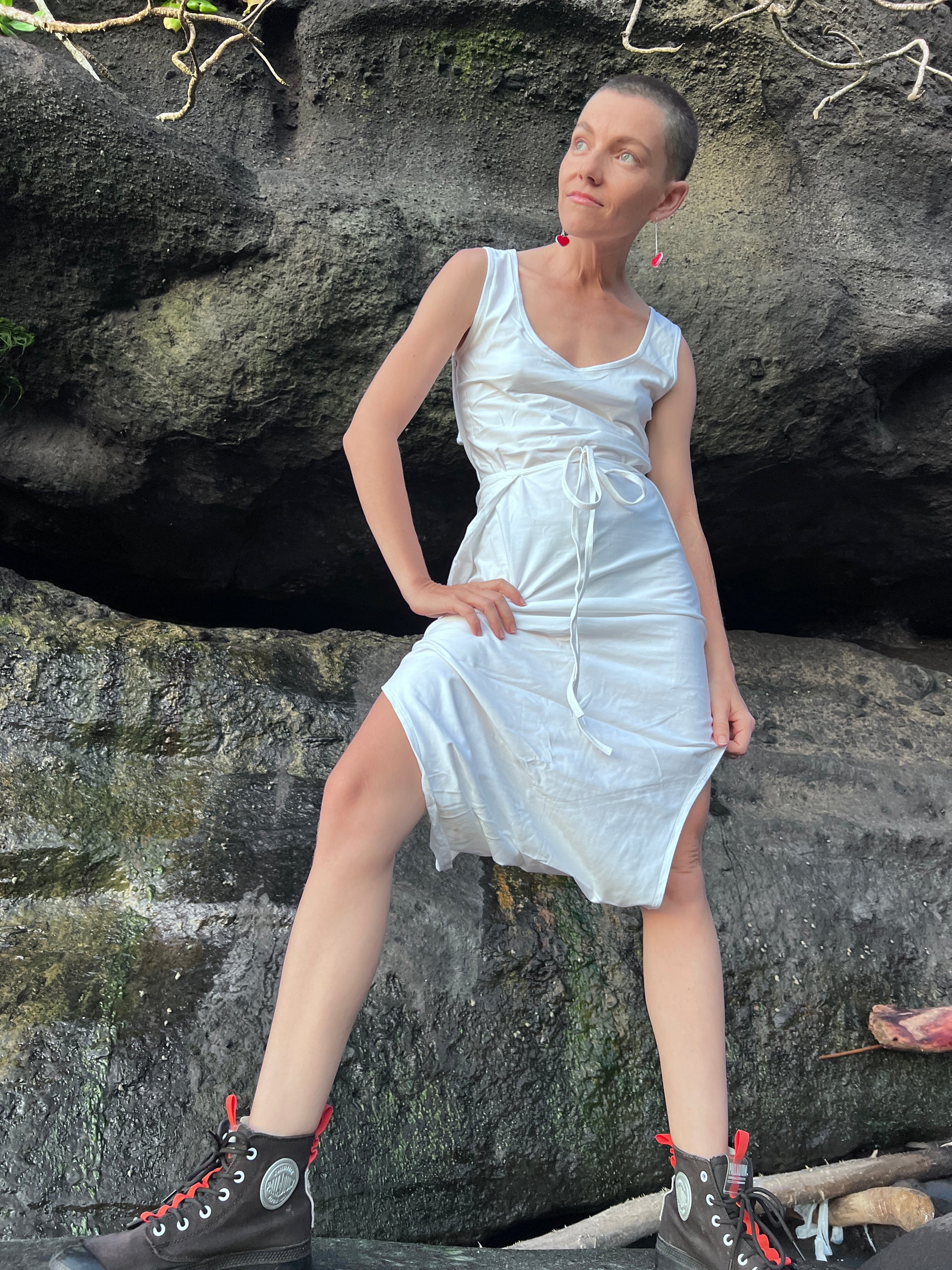 The perfect transforming summer dress for an active lifestyle – think beach days, tropical hikes and fun photoshoots. It gives you the freedom to move and do all the exciting things you love. It is made of soft, breathable cotton for ideal comfort even on the hottest summer days, with an adjustable length that you can change depending on your mood.