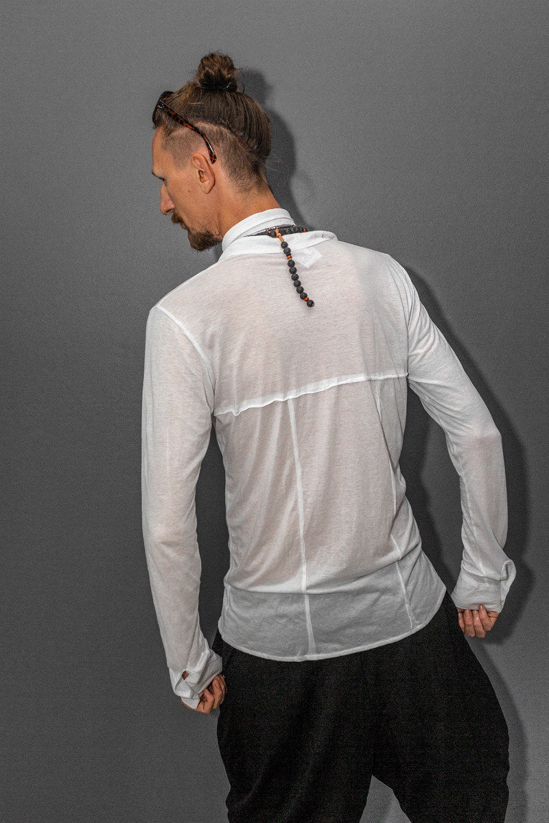AKIO Men's cotton shirt with removable collar, long sleeve slim fit shirt male Designer casual shirt fine cotton longline plain shirt men
