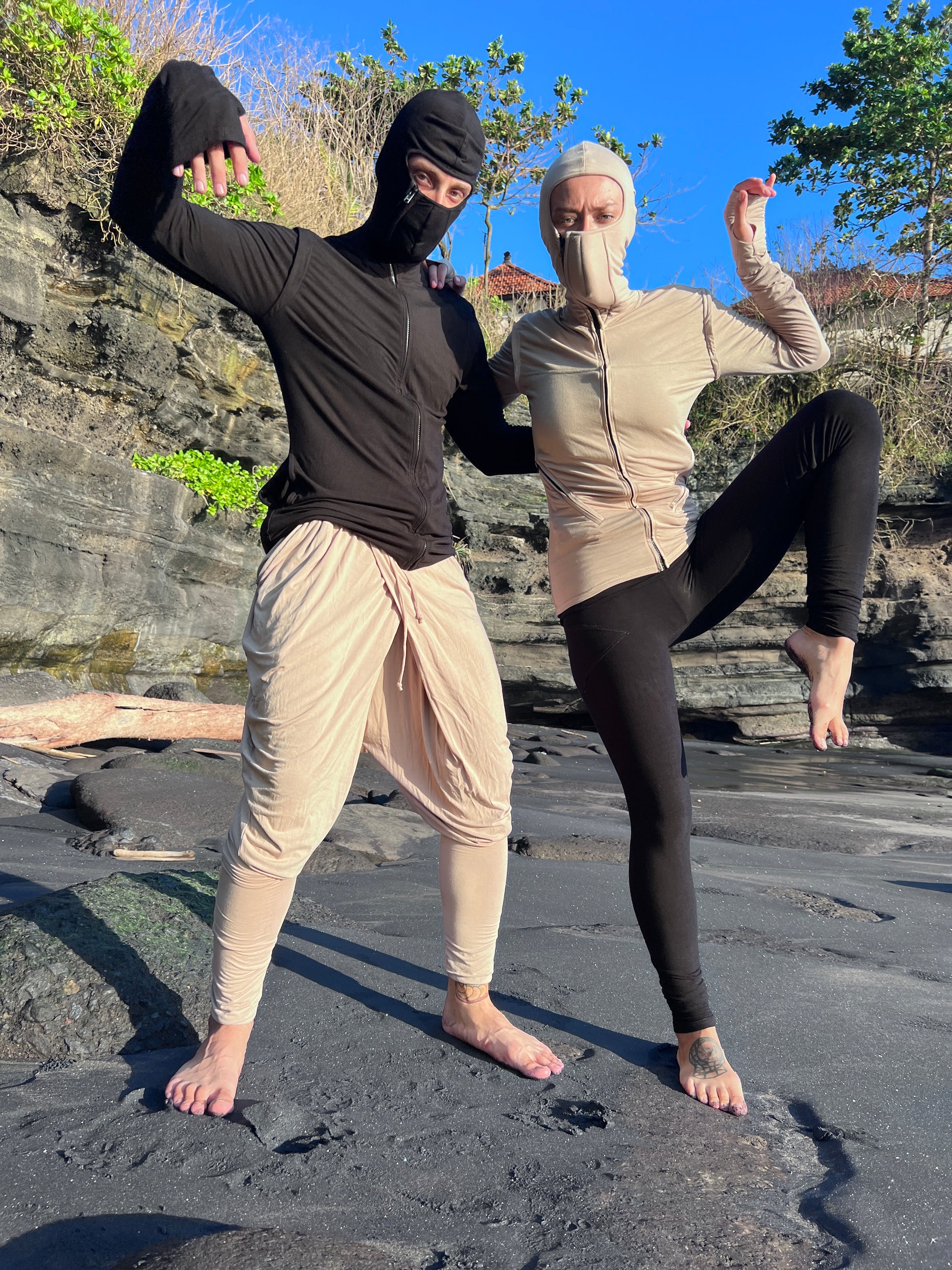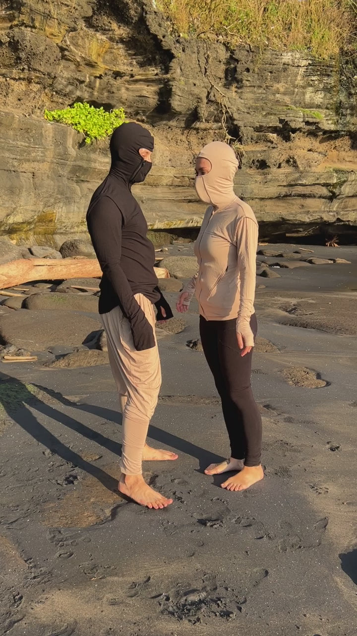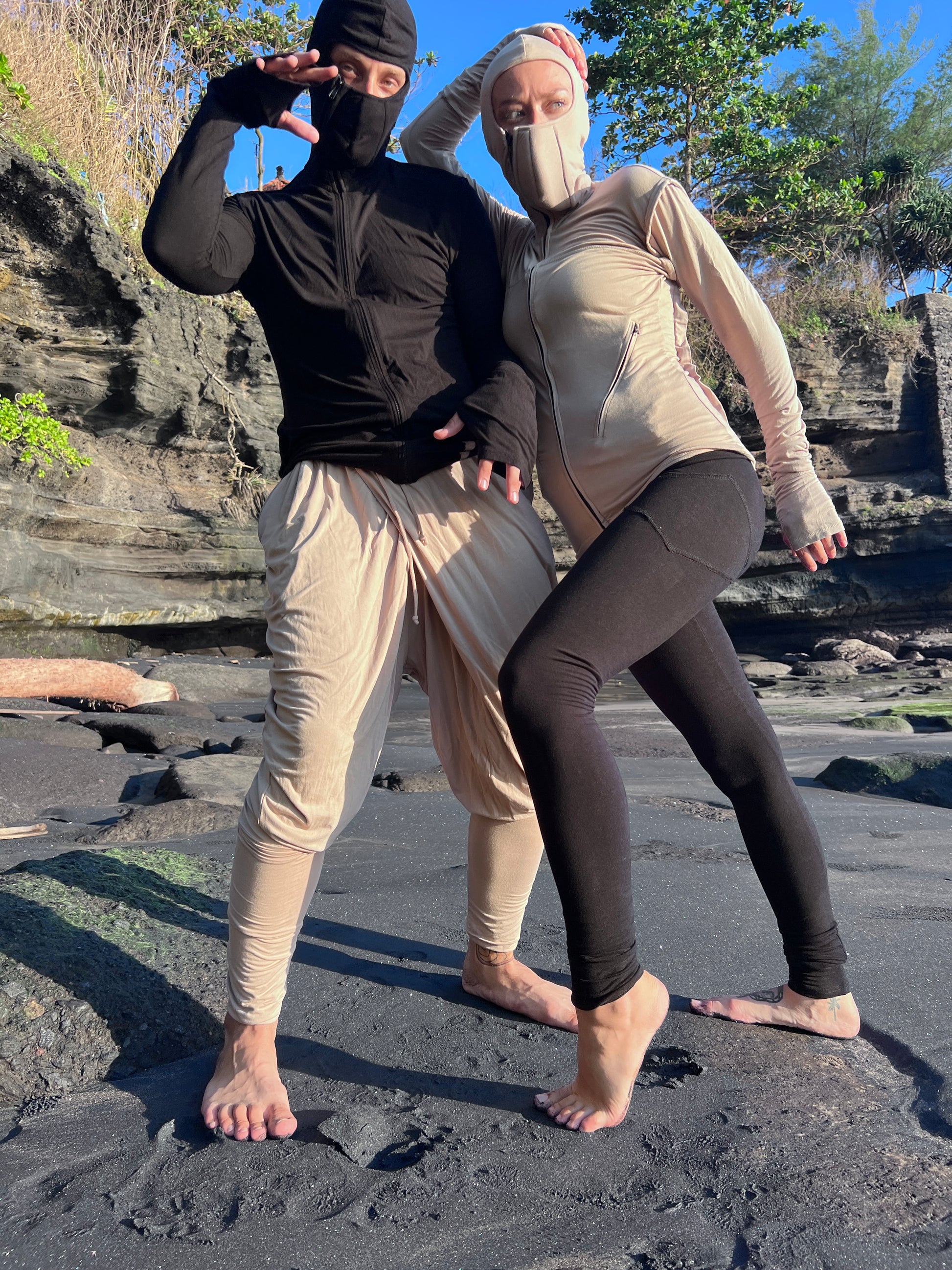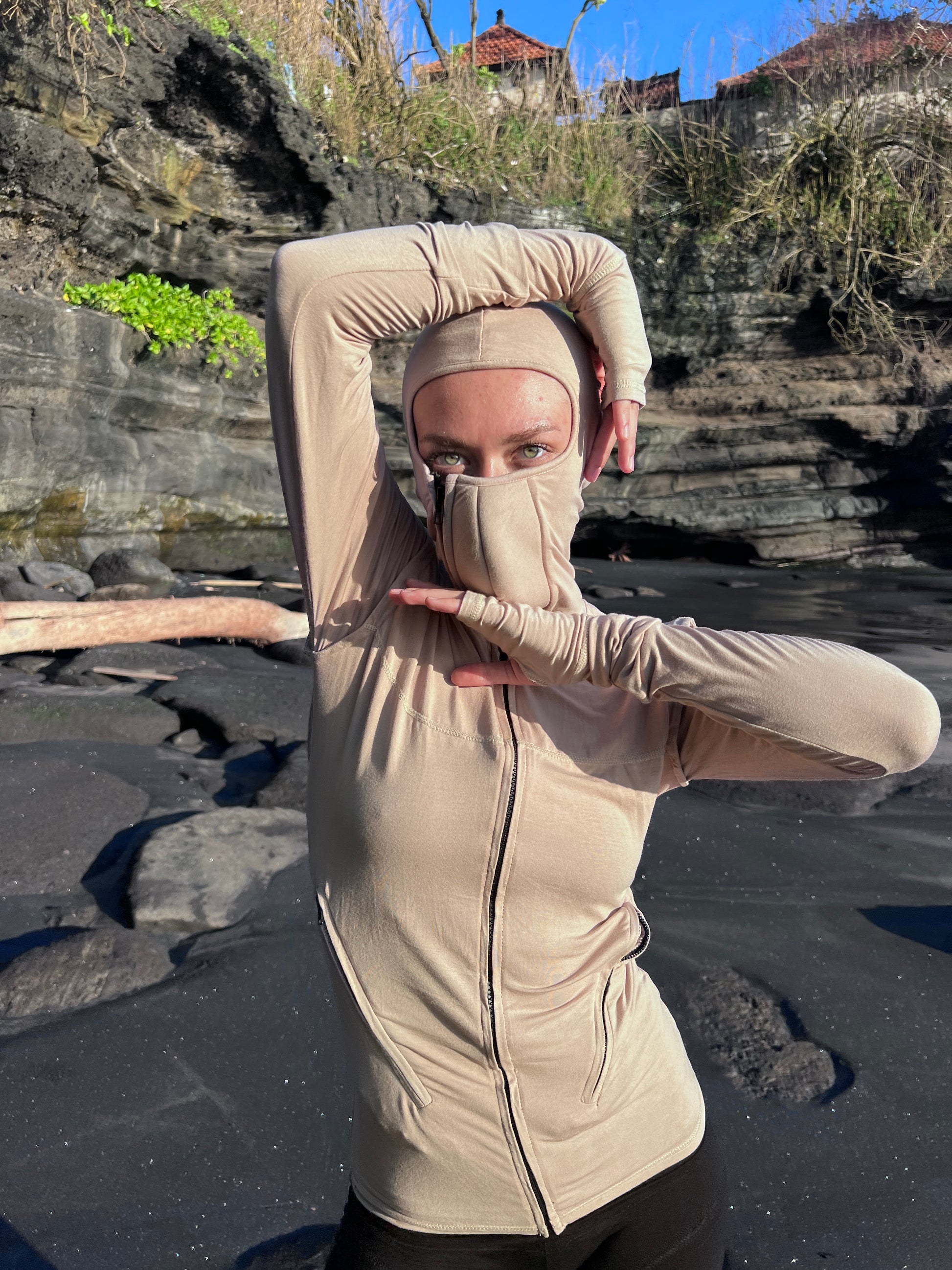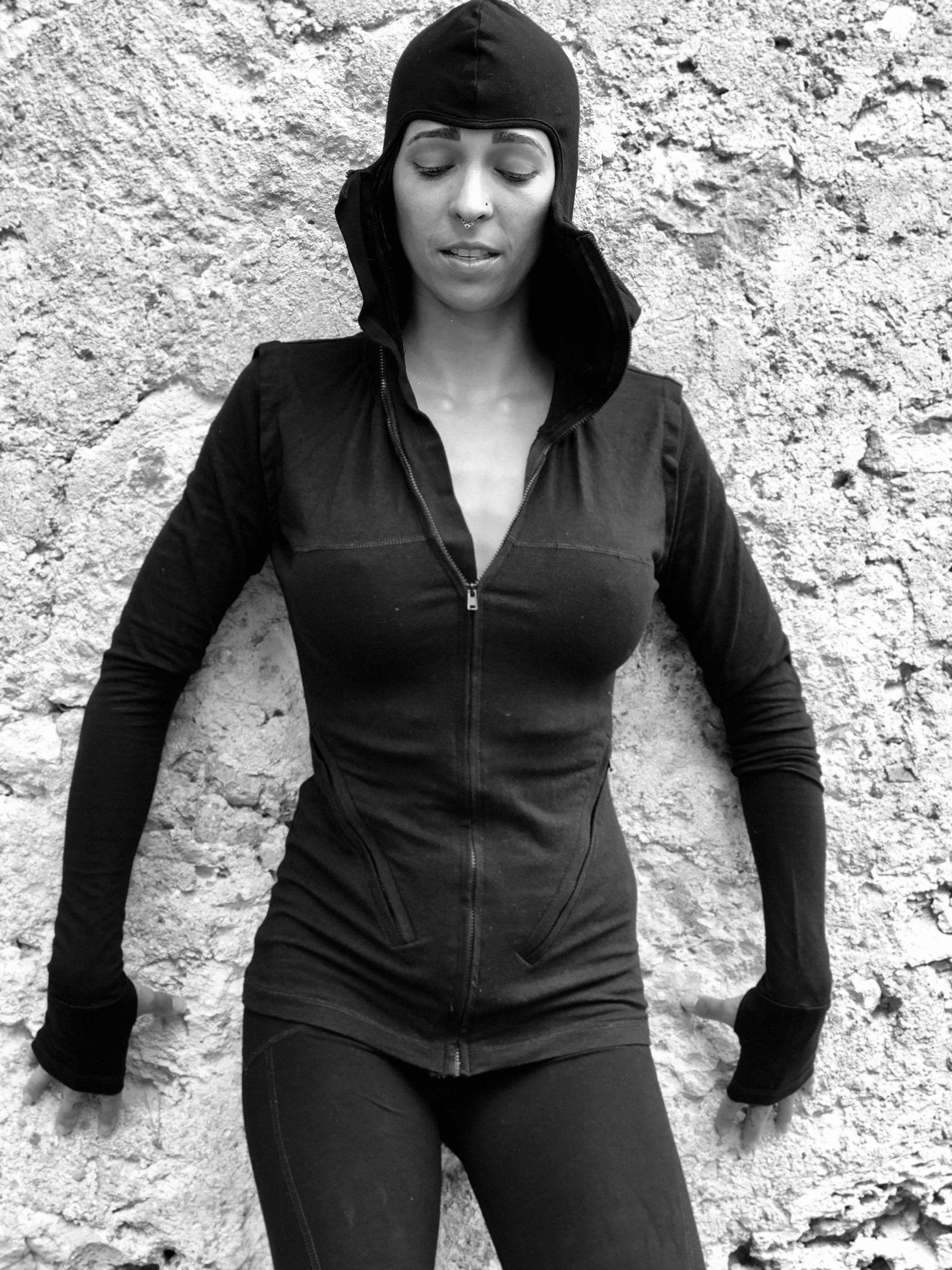 Designed for fierce femininity and comfort, our women’s ninja hoodie offers a sleek, face-covering zip design that leaves only the eyes visible. Made from ultra-soft bamboo or rayon, it’s breathable, eco-friendly, and features secret pockets and a slim, minimalist hood. A bold, expressive statement in motion.
