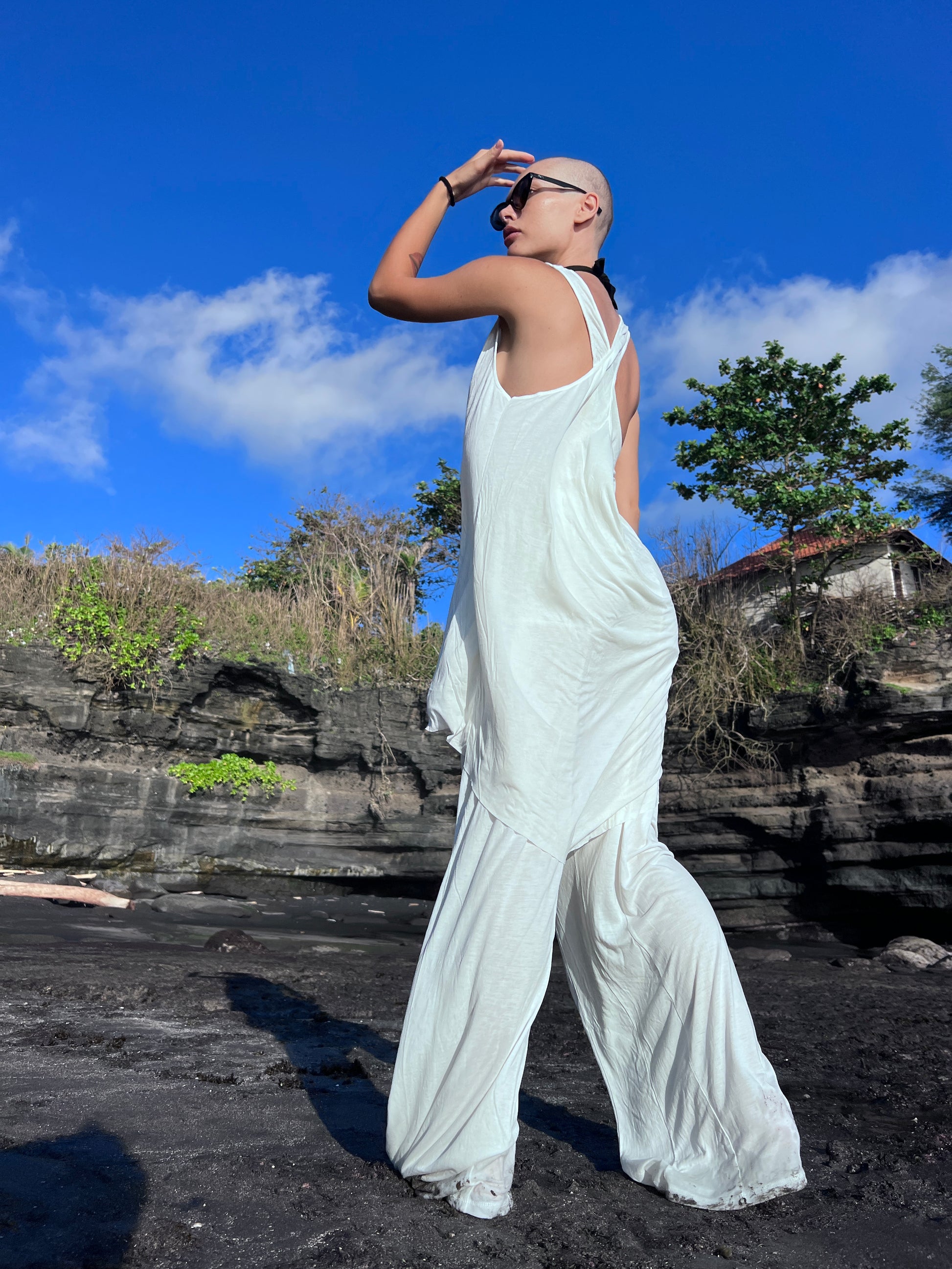 RAN Off-White Cocktail Tunic Dress Women Sexy Tribal Minimal Dress Off-White Tunic Sleeveless Goddess Dress Backless Maxi Tunic Tank
