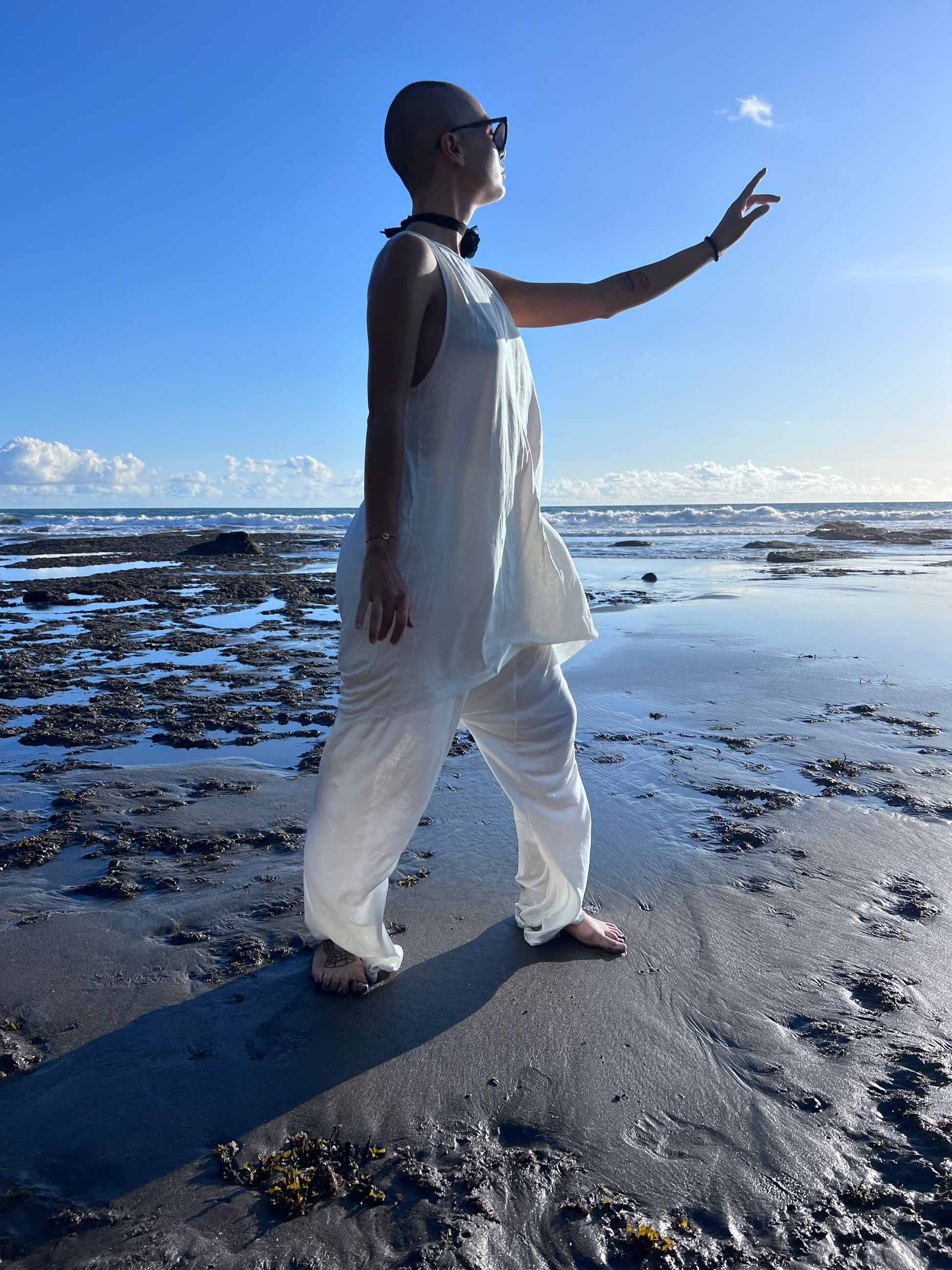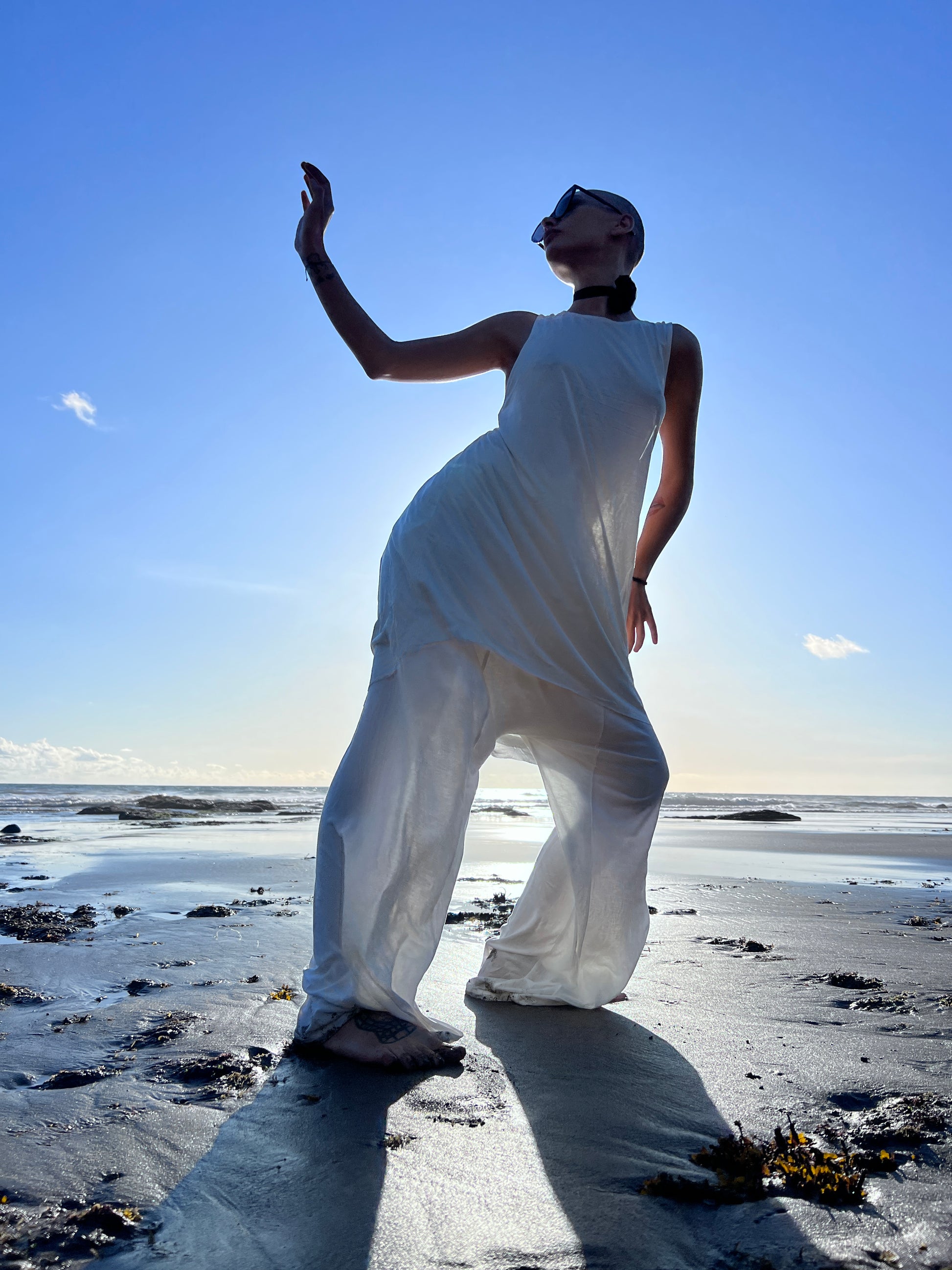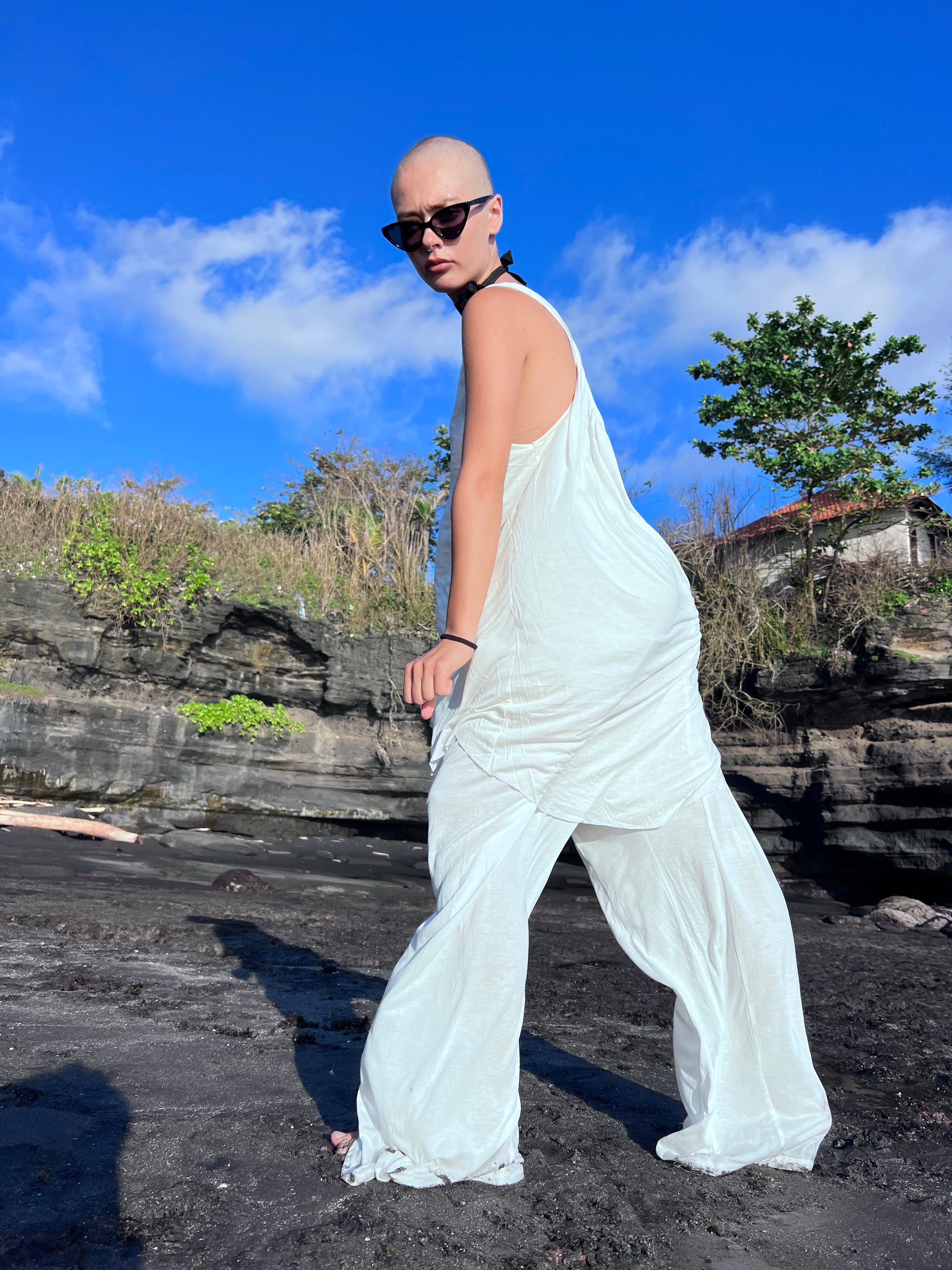 Breathe with ease in this ultra-light bamboo tunic dress RAN with an open back. Soft, flowing, and alive on your skin — this piece is as versatile as your day. Wear it with leggings for a grounded look, with wide pants for movement, or nothing at all to feel completely free.