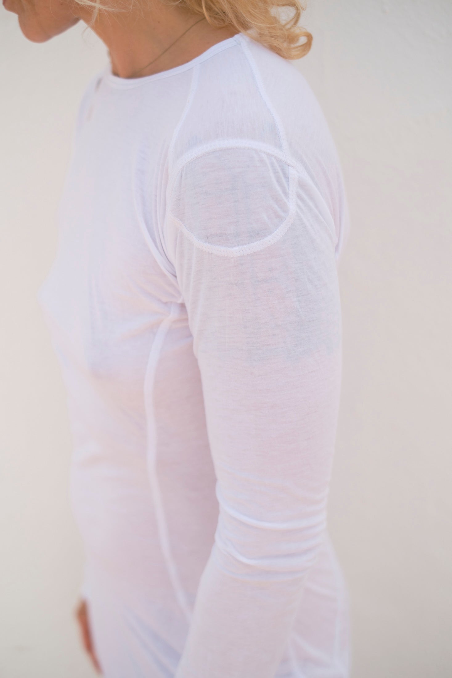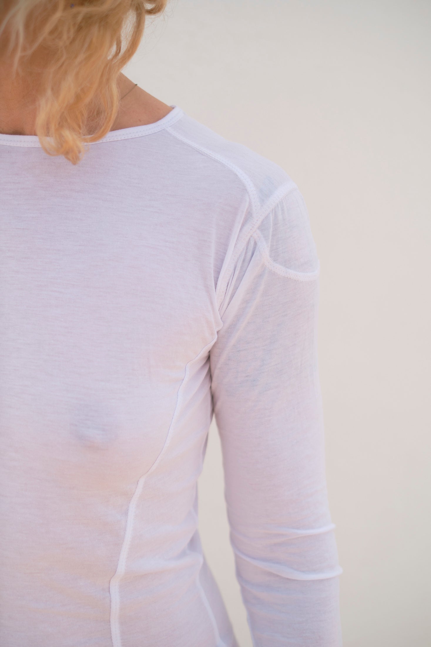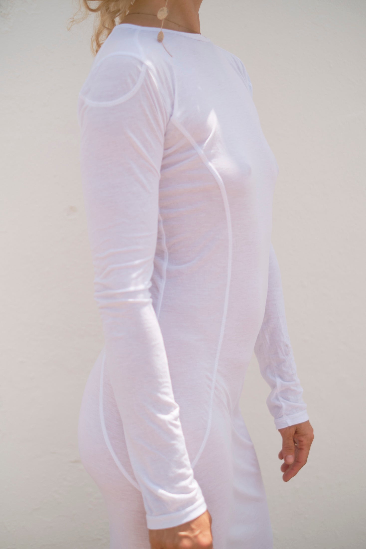 Experience the elegance of simplicity in this ultra-lightweight dress crafted from the world’s finest cotton — Cotton Suprima. Inspired by the refined aesthetics of Japan, this dress embodies quiet beauty and mindful design. Featuring slim long sleeves and a soft, rounded neckline, it gently embraces the body, offering a unique silhouette that feels like a second skin.